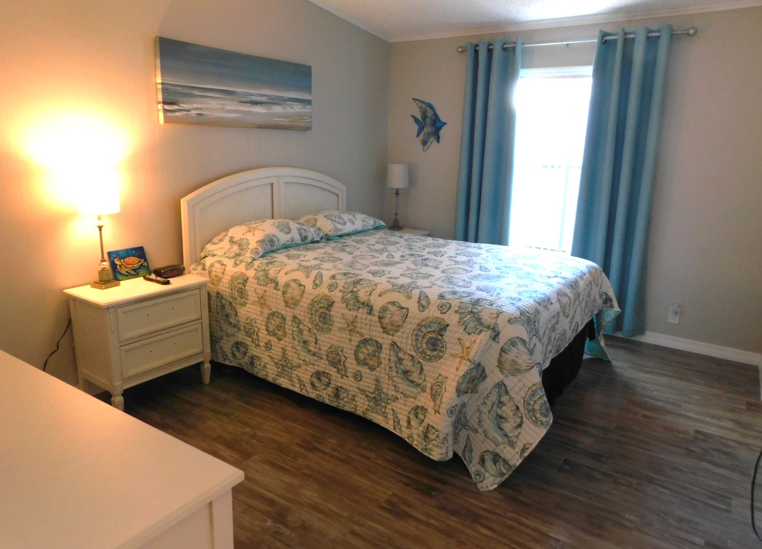 Both bedrooms and baths are at the back of the home. The guest bedroom is very roomy, with a Queen-size bedroom set. It has a walk-in closet and across the hall is the guest bathroom. It has a new vanity, new tall toilet and a tub/shower combo.