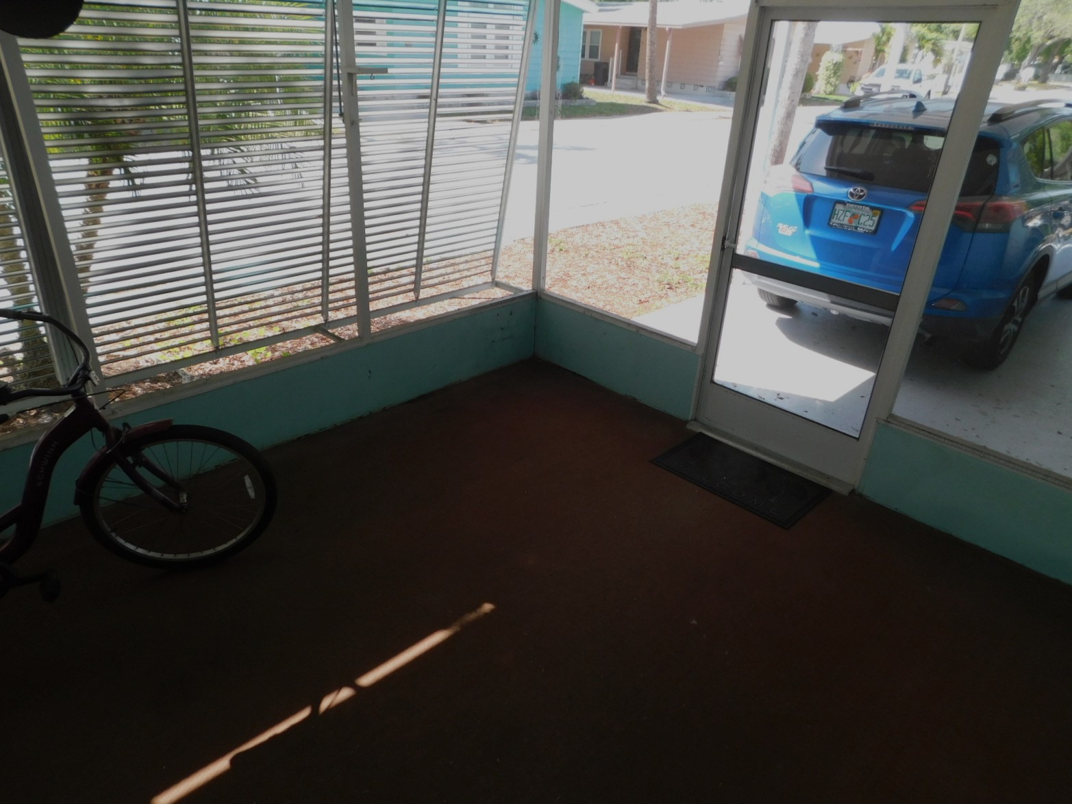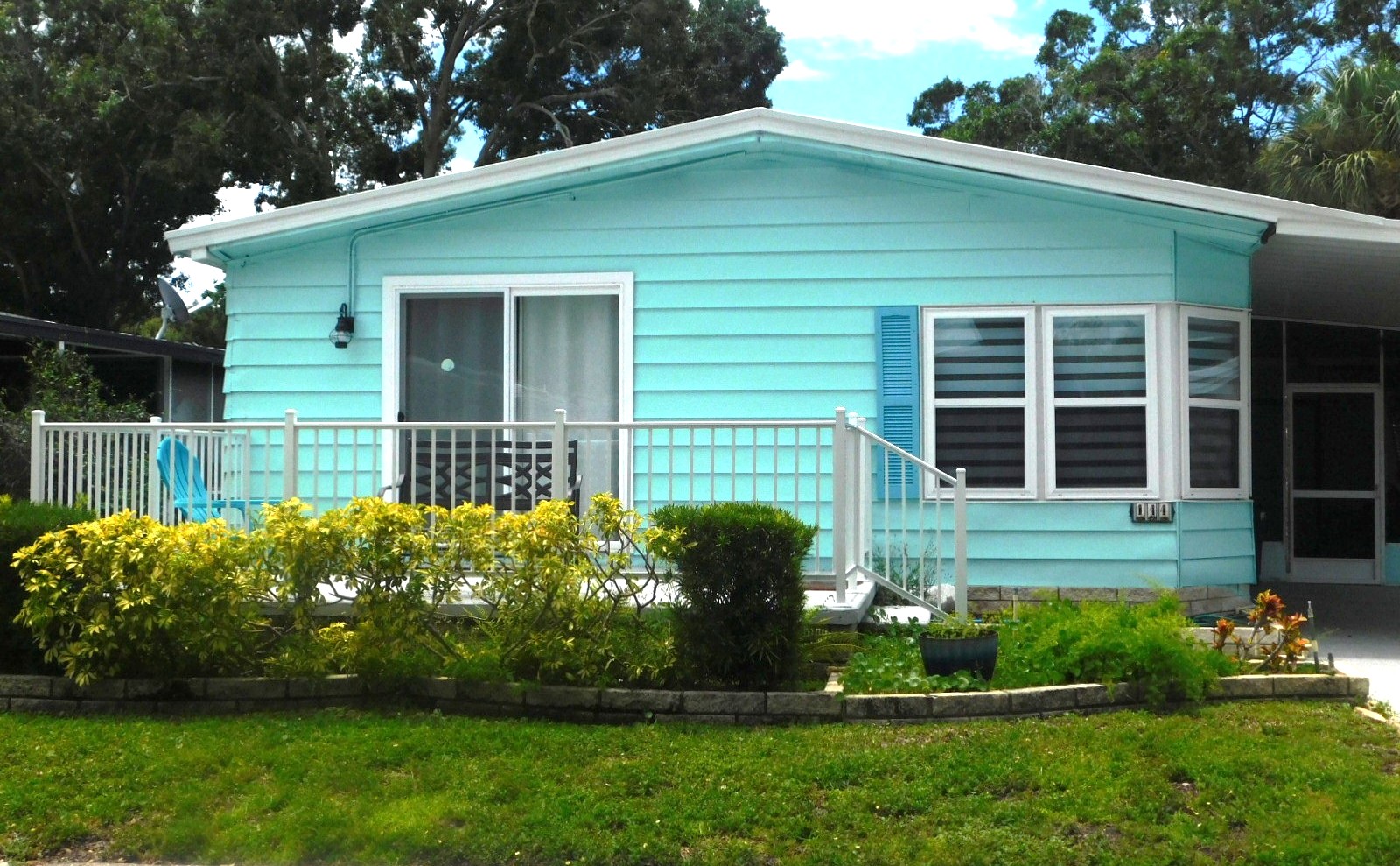 Out on the carport you will see a screened-in patio with slatted shutter to help protect you from direct sun while sitting in this space. There is also a built-in shed.
