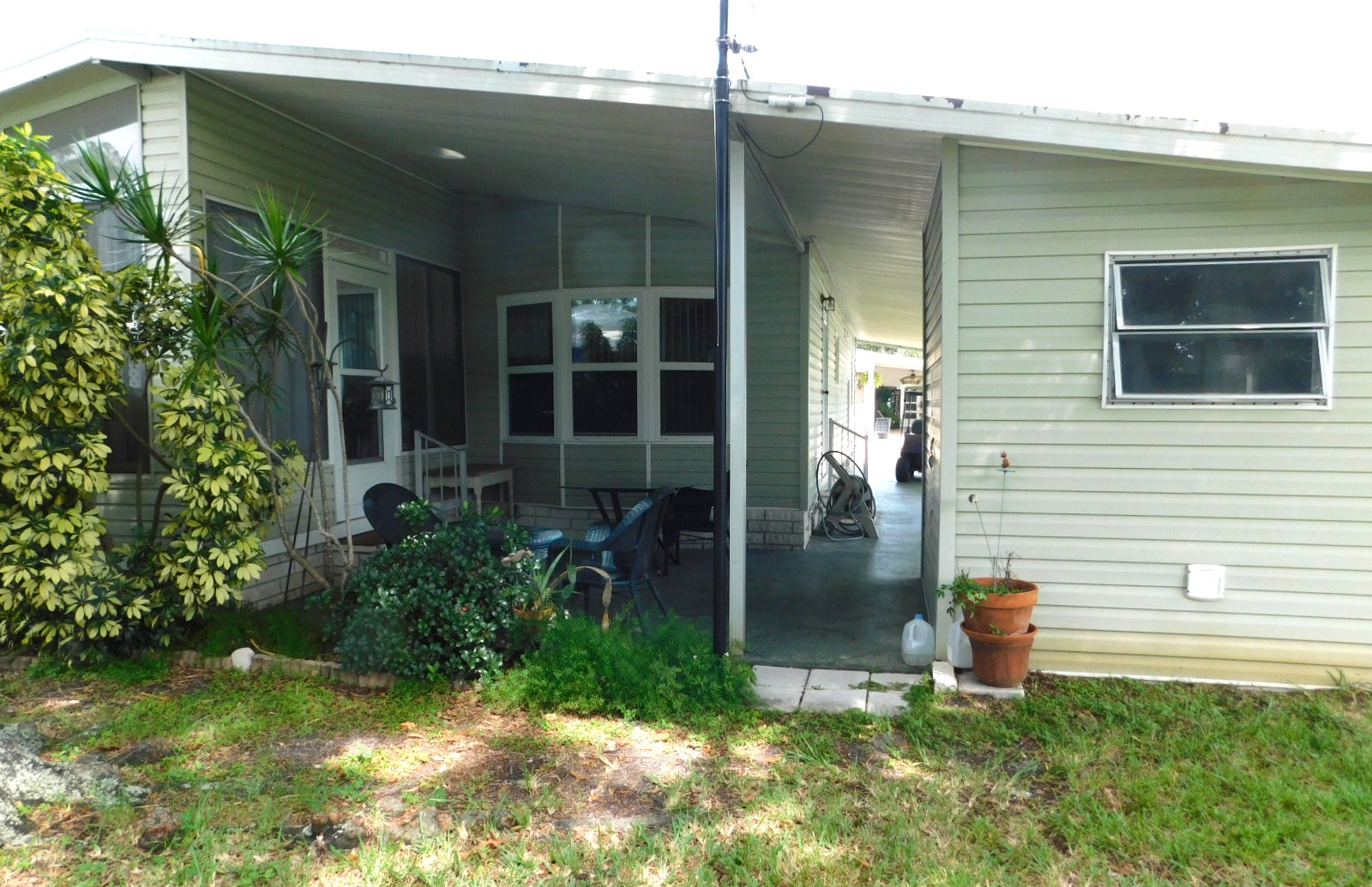 Out the side door which is also the 2nd. entrance into the home you have this beautiful, covered patio with great views of the pond. Attached to the patio is the built-in shed that is under the long carport. The driveway can easily hold 2 vehicles and a golf cart.