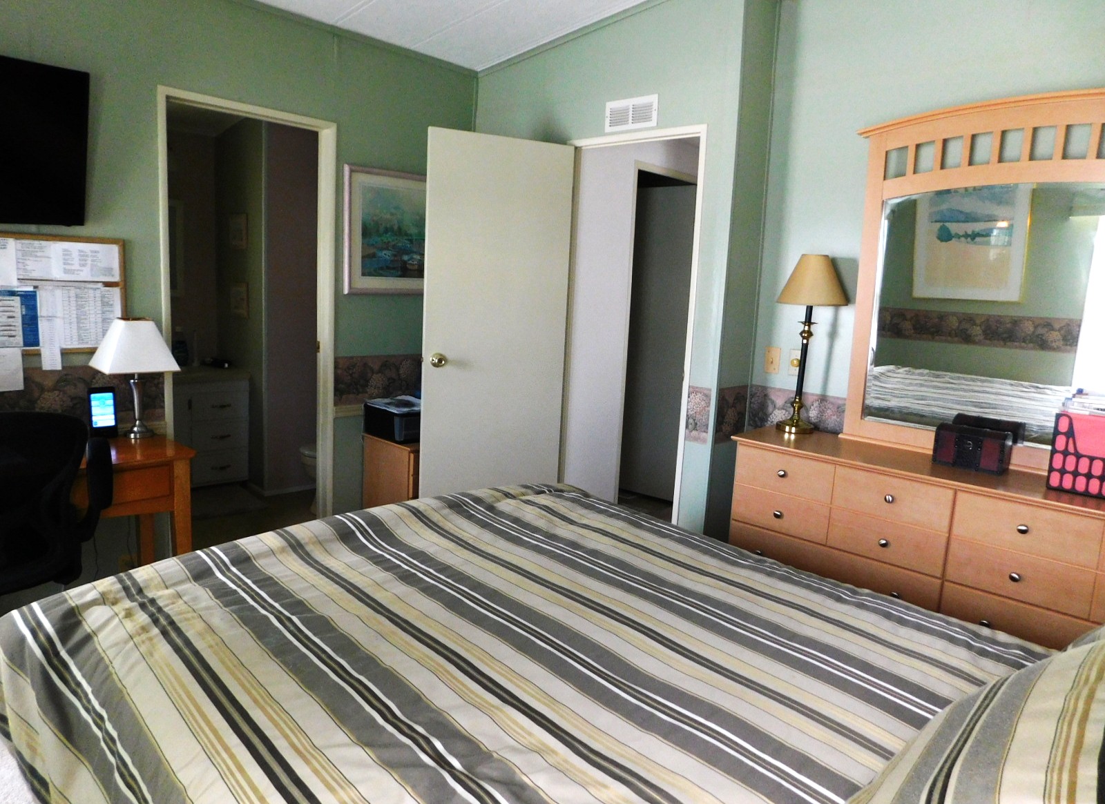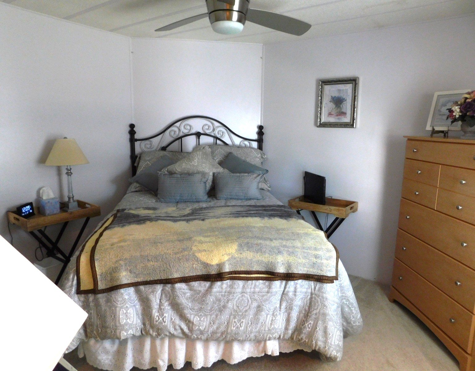 The master suite is across the whole front of the home. It has a walk-in closet, space for the Queen size bedroom set and still have room for a desk. The master bath has the other walk-in shower, a linen closet, medicine cabinet mirror with storage, storage over the toilet and a vanity with drawers and below the sink storage.