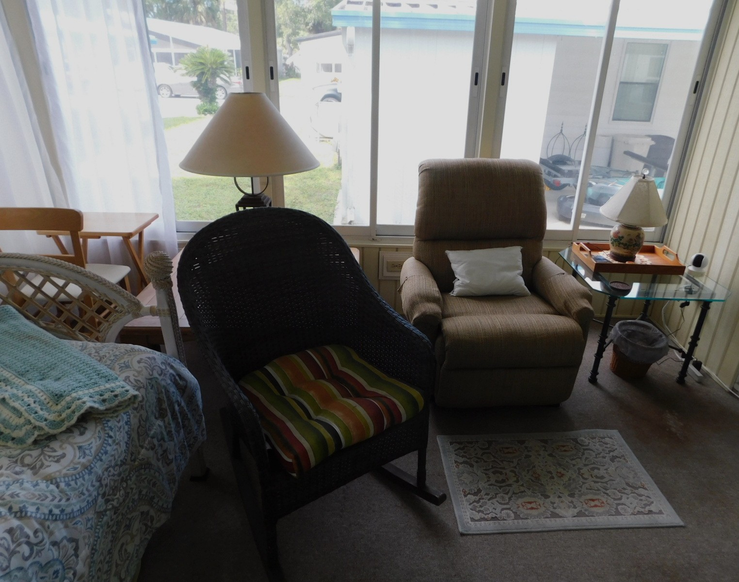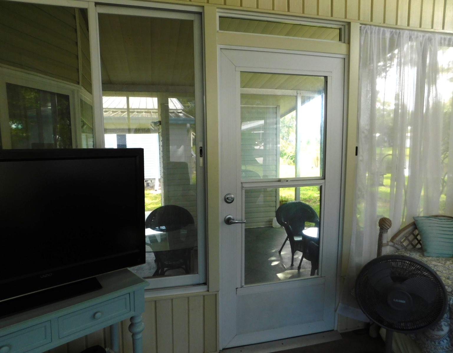 The final room inside we have is the Raised Florida Room. There is a daybed in case you need additional sleeping space, and it has a great view of the pond.