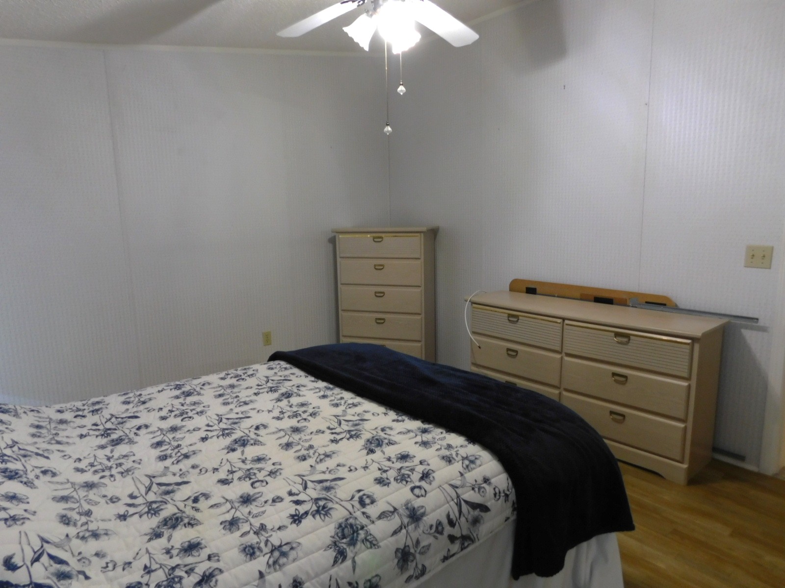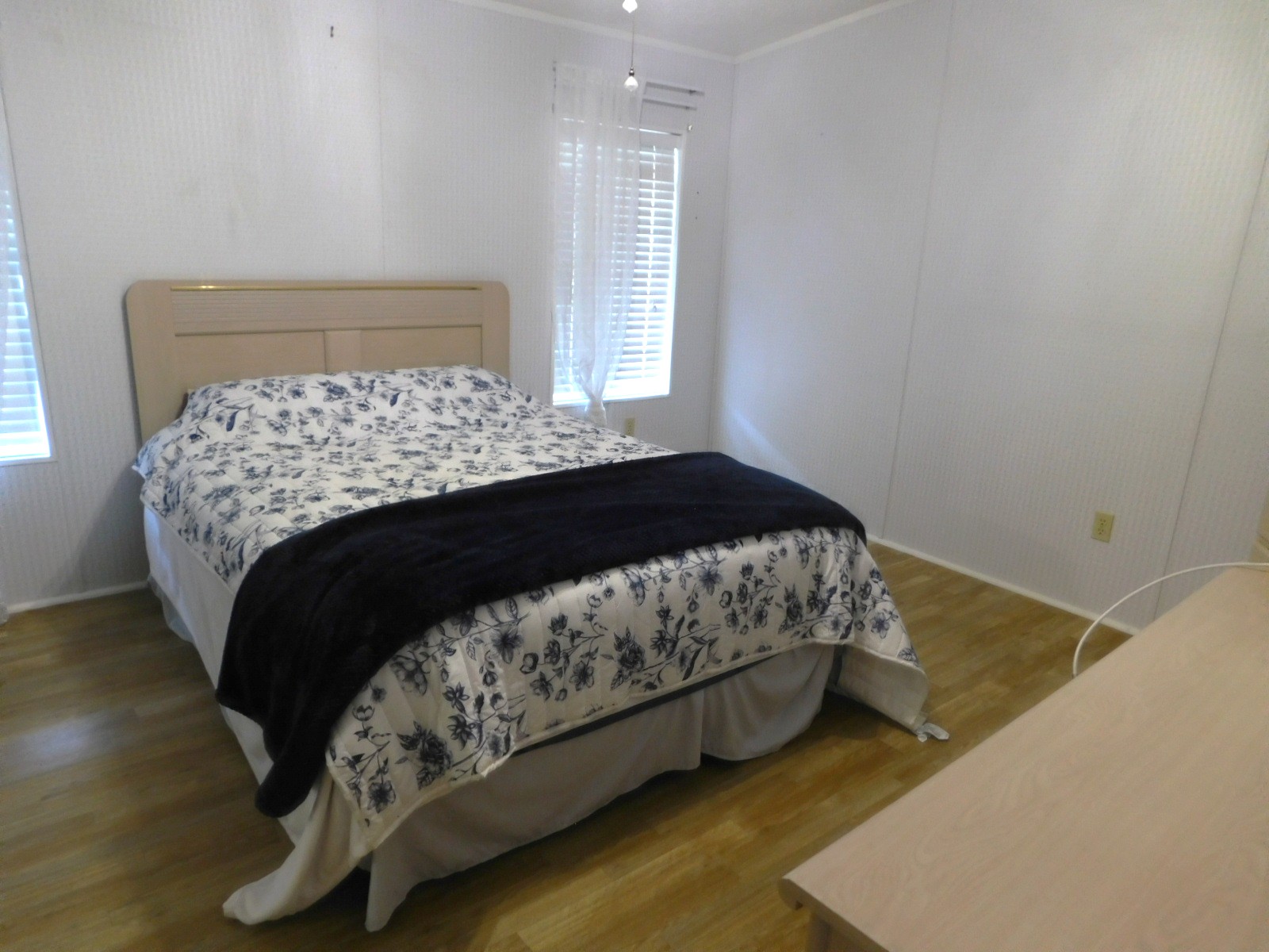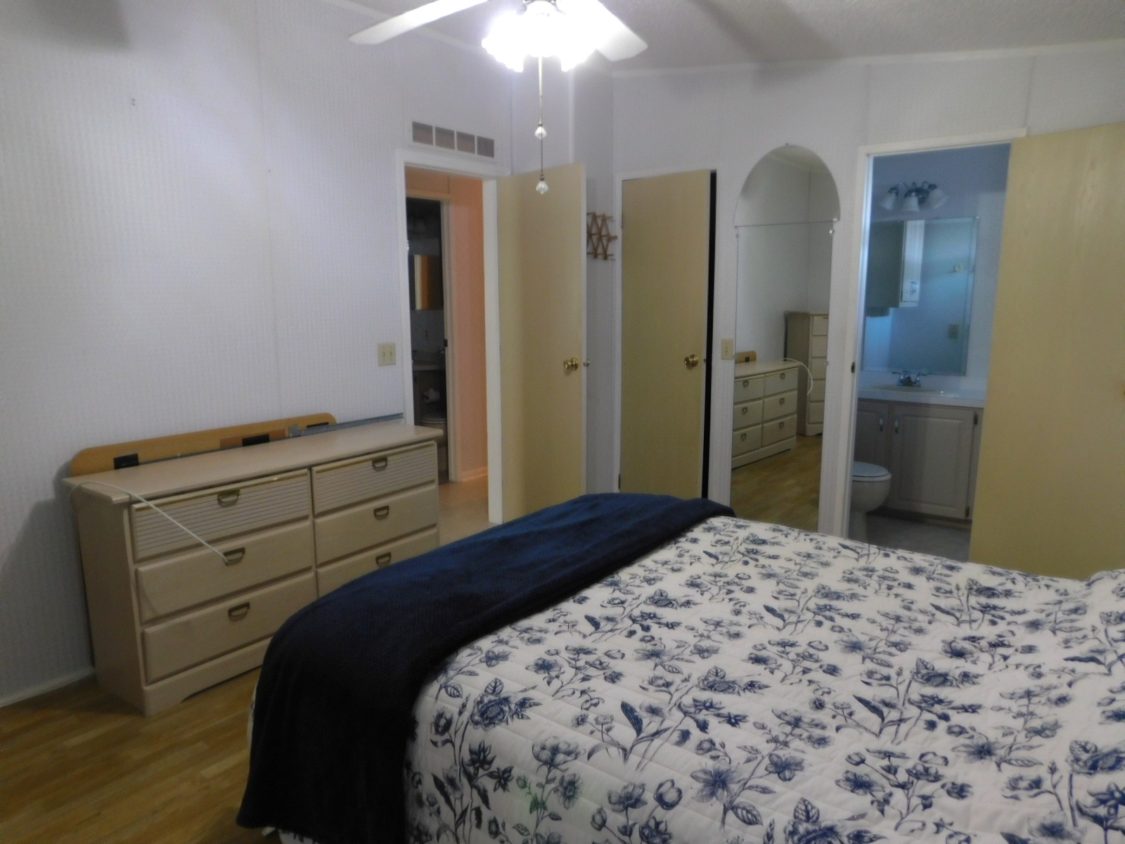 The master bedroom is spacious and along with the walk-in closet it has its own bathroom with the other new walk-in shower with a built in seat. There is a Queen size bedroom set that goes with the sale.
