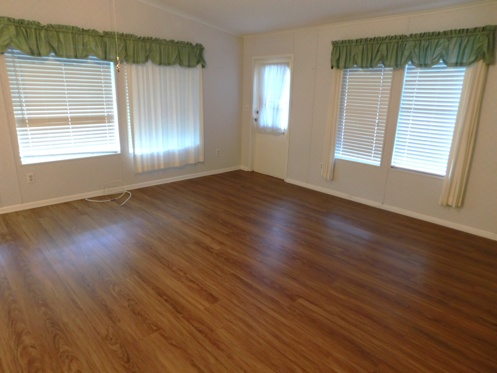 The living room is very spacious. Plenty of room for a couch, chairs, TV set and there will still be room to move around. Also part of this space is the front door to home.