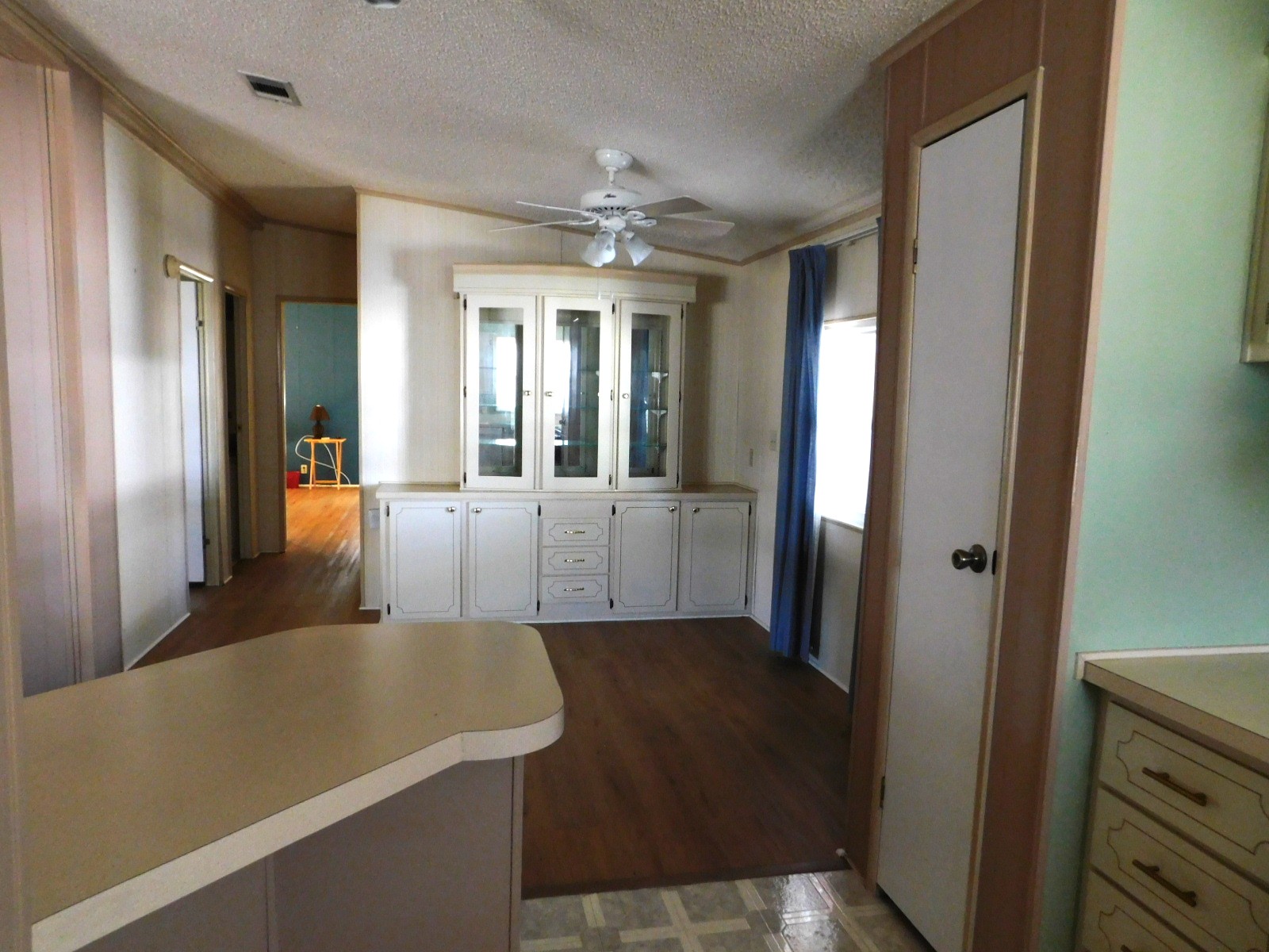Entering the home, you have a large living room with 4 large windows for additional daylight to enter. It is open to the dining room that has a built-in China cabinet and is open to the U-shaped kitchen.