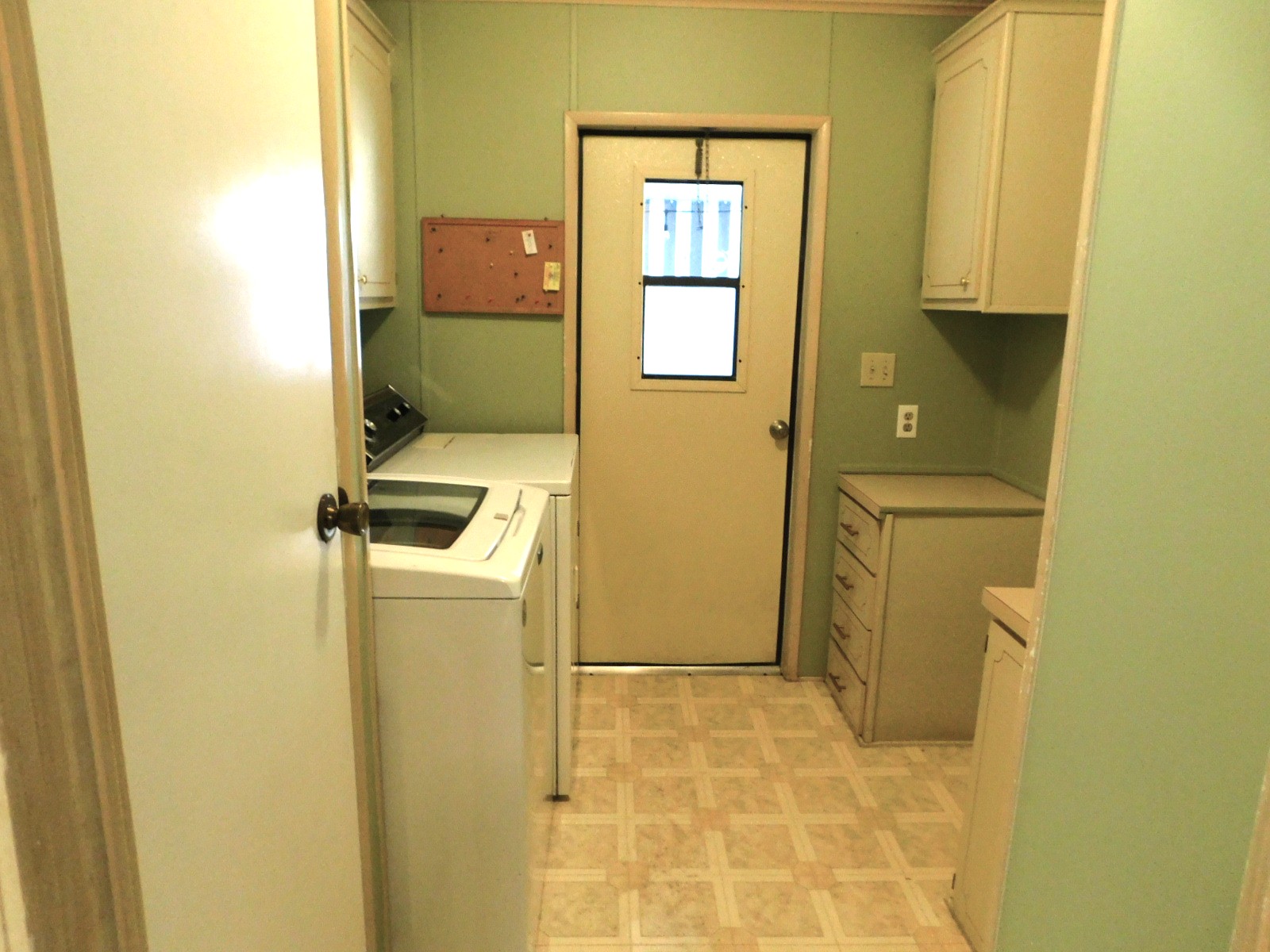 Down the hallway you have the laundry room with both an area that could be an office space with some modifications and extra storage. There is also a Laundry sink in the closet. More storage above the washer n dryer. This also has the second entrance into the house.