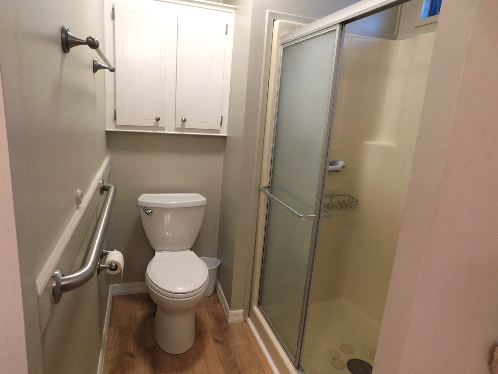 This room is across the hall from the guest bedrooms, and it has a handicap accessible tub/shower combo, and a tall toilet.