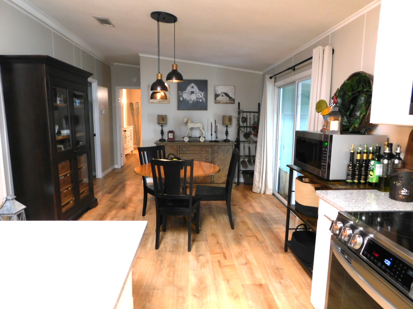 DINING ROOM The dining room has its own separate space with a beautiful 2 yr. old light fixture over the dining table. It is also open to the kitchen.