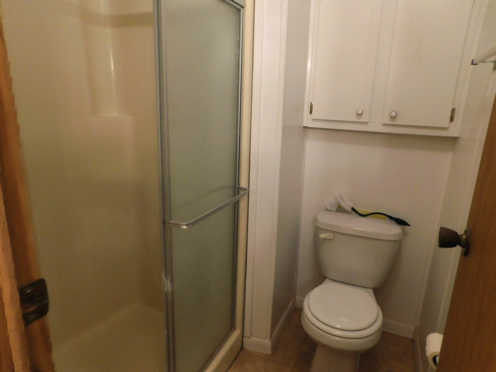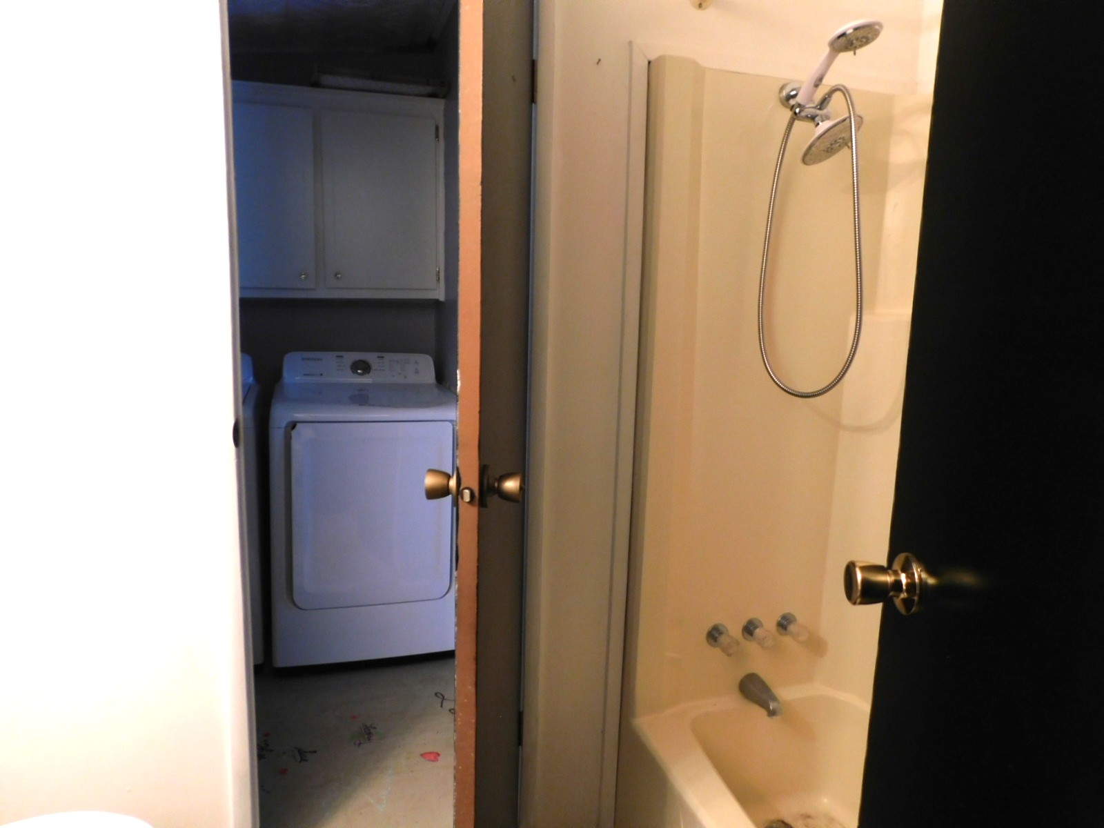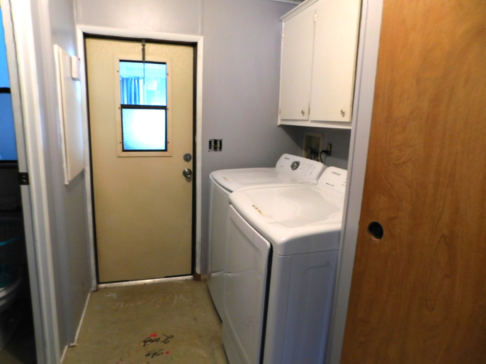 Across the hallway from the kitchen is the laundry room with access to the patio. The guest bathroom is also connected to the guest bedroom. This bedroom is large enough for a Queen size bedroom set.