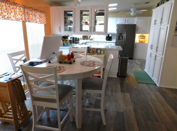 This space is the 3rd section of the home. There is so much storage and counter space. Newer appliances, redone counter tops, backsplash, redone cabinet fronts and a nine panel wall of storage cabinets. On the other side of the kitchen is the breakfast nook with 3 northern facing windows to allowing natural light to flow in.