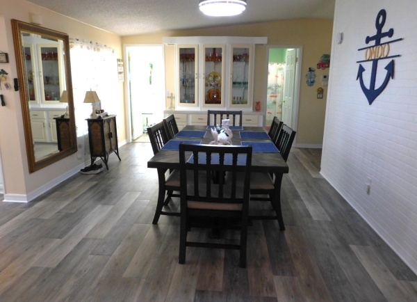 This is the first room into the home. It has space for a long table and there is a built in China cabinet.