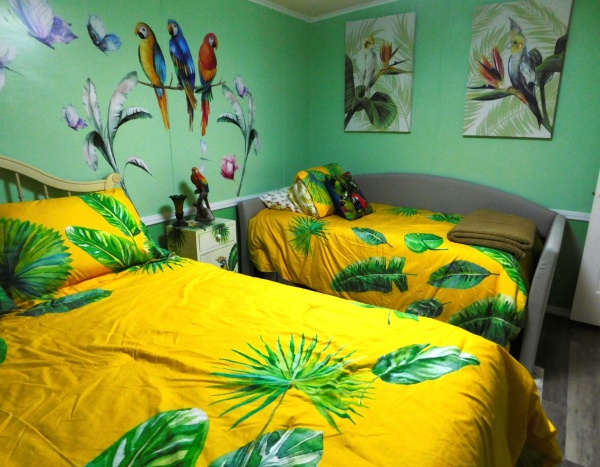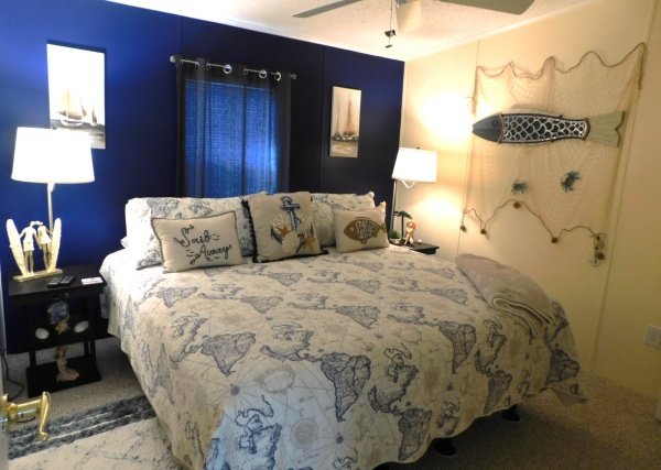 To the right is the 2nd. guest. It currently has a Queen size bed, with room for the side tables.