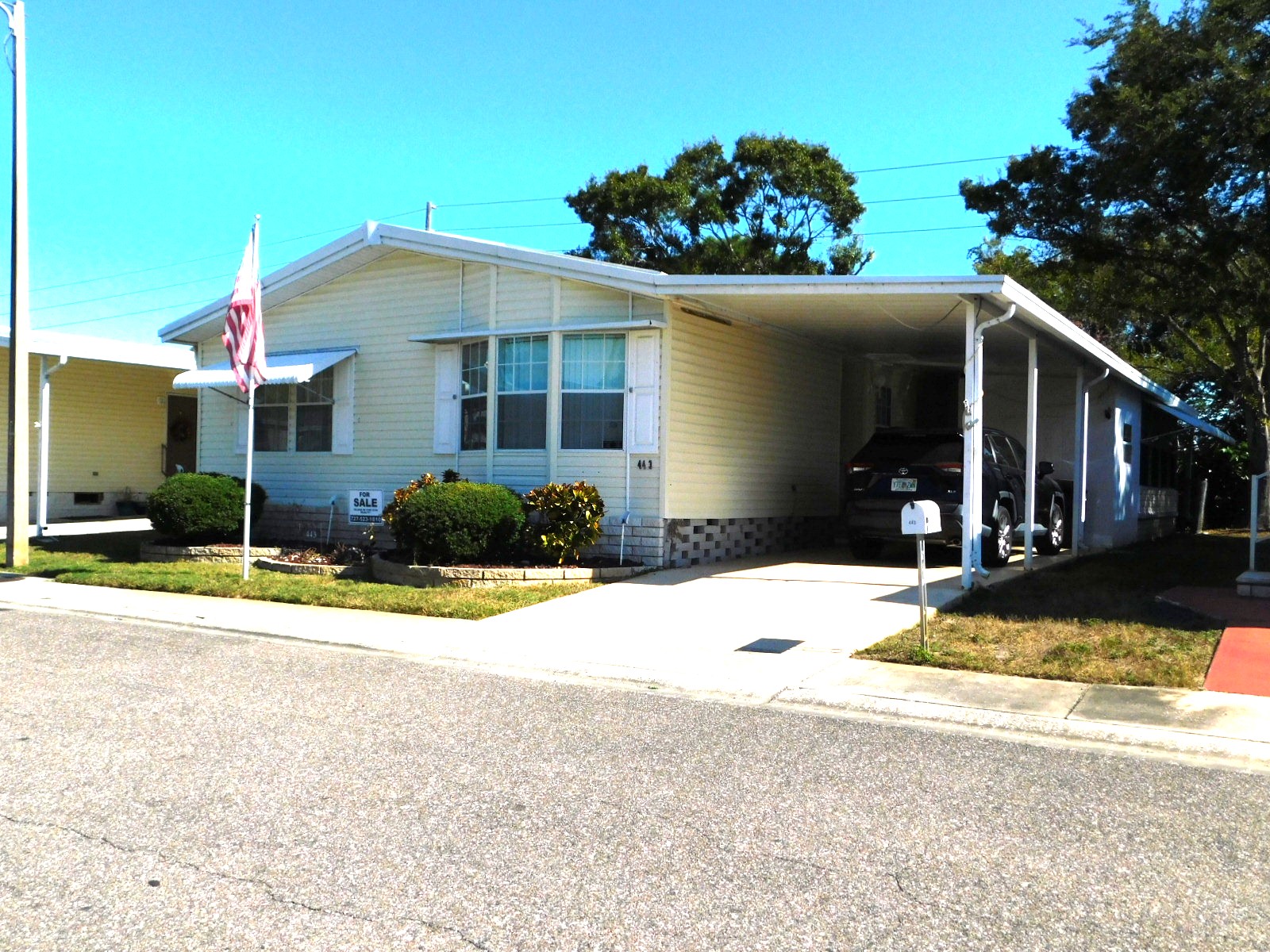 The carport has not only a built-in shed but a ramp for access into the Florida room.