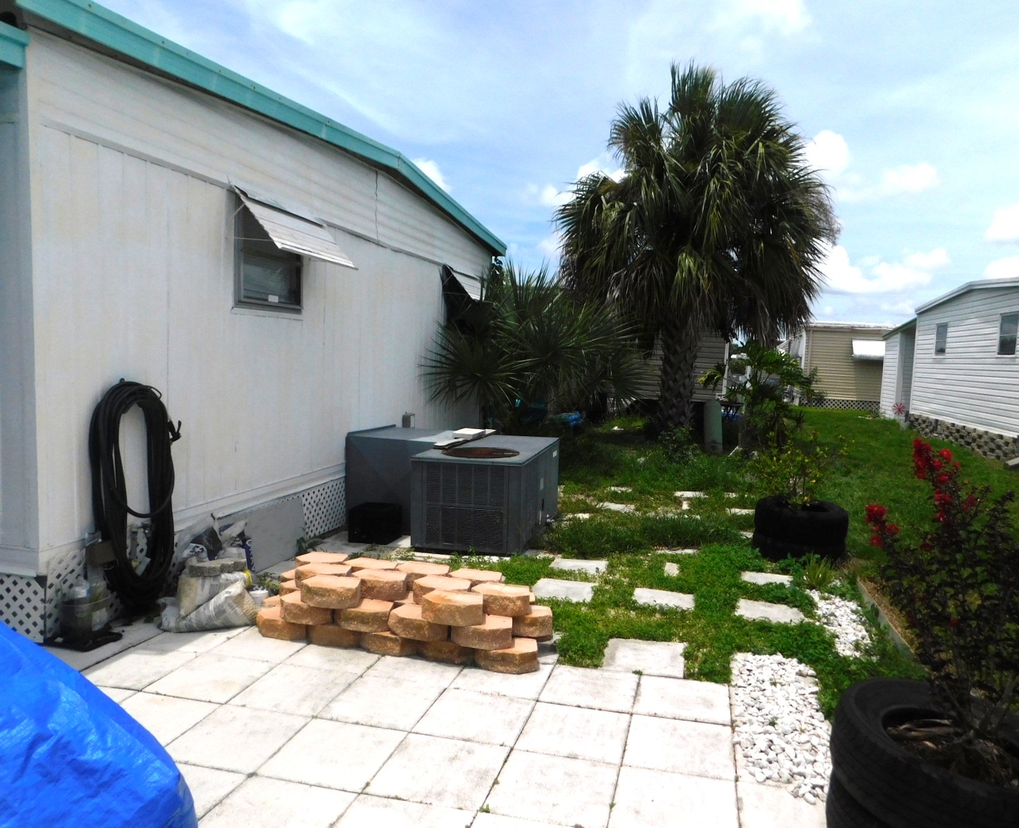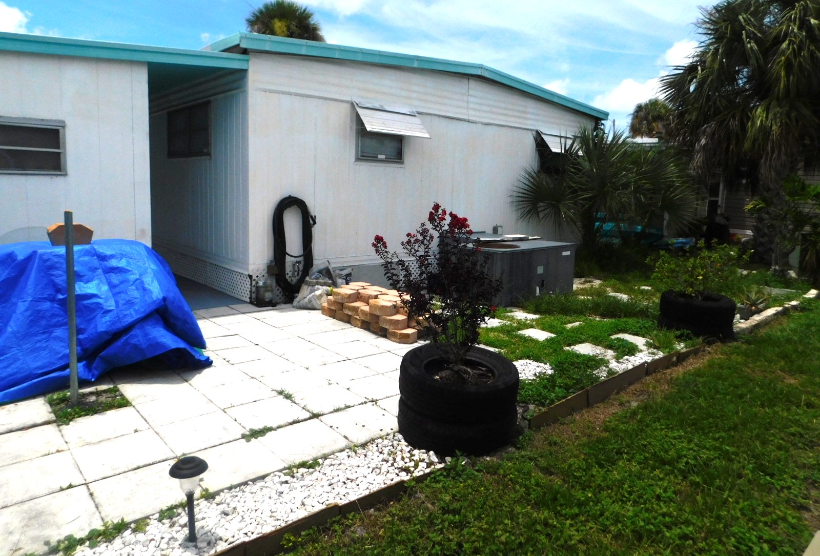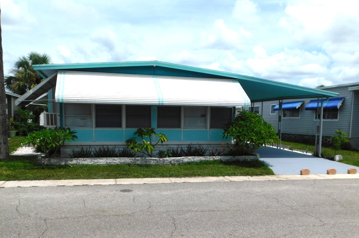 – Double-wide – 2 bed – 2 bath – Metal roof over – Florida room is full width of home, facing West, with window A/C